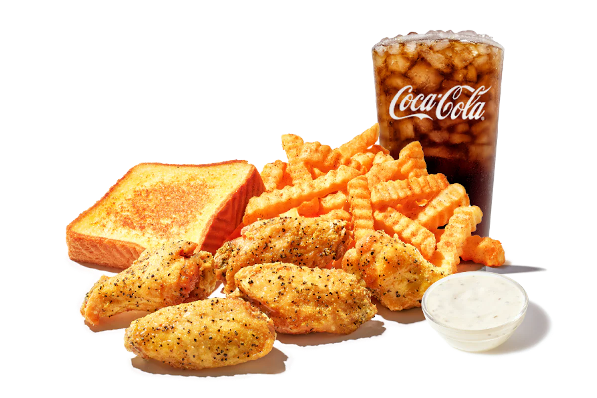 5 Wings tossed in our zesty, tangy Lemon Pepper Dry Rub with Ranch, plus 3 Chicken Fingerz™ with Zax Sauce®. Served with Texas Toast, Crinkle Fries, and Small Drink.