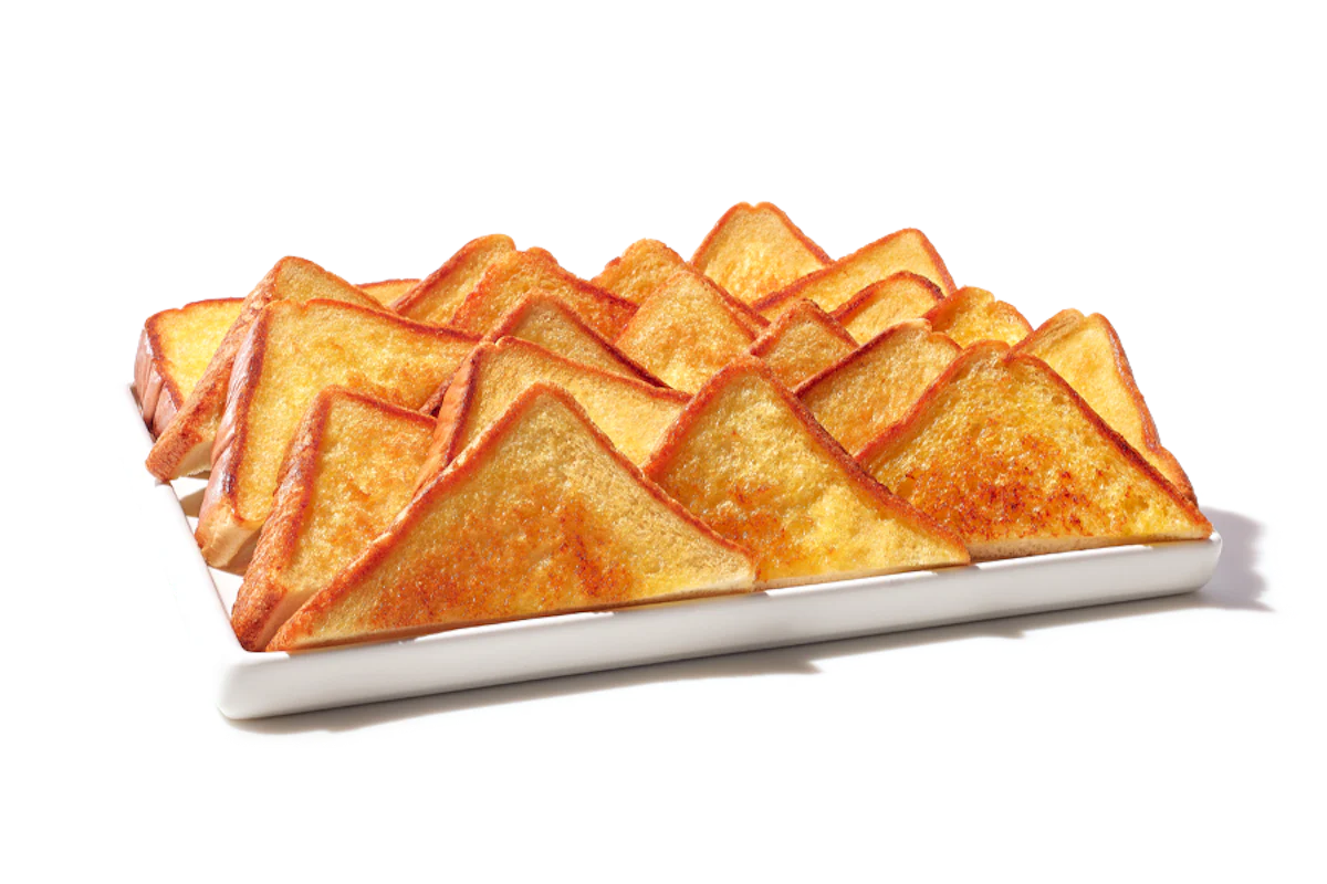 Can't beat a basket of mouthwatering goodness unless it comes piled high on a platter instead. Order a party-worthy portion of our thick-cut toast (20 half slices), grilled with our signature garlic spread. Serves 12-14.