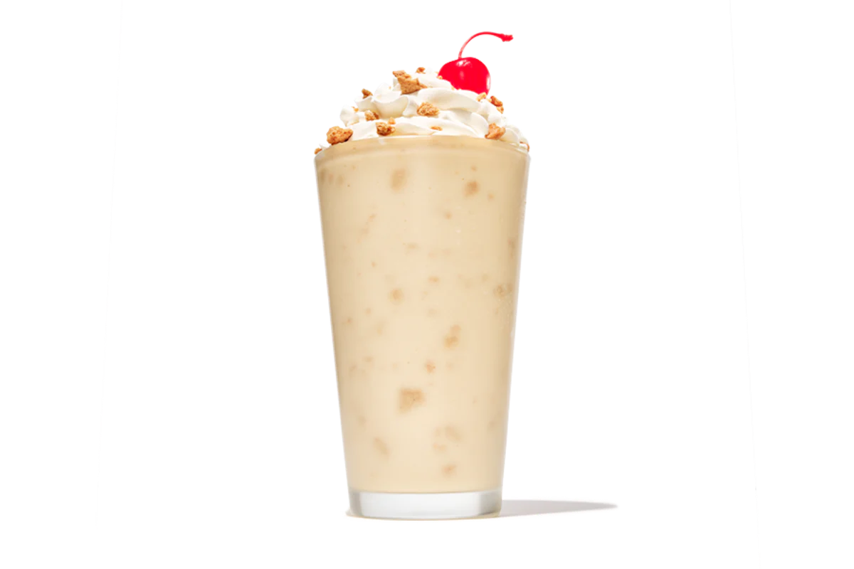 A hand-spun cookie butter milkshake mixed with cookie pieces and topped with whipped cream, cookie pieces, and a cherry. Only available in size Small.