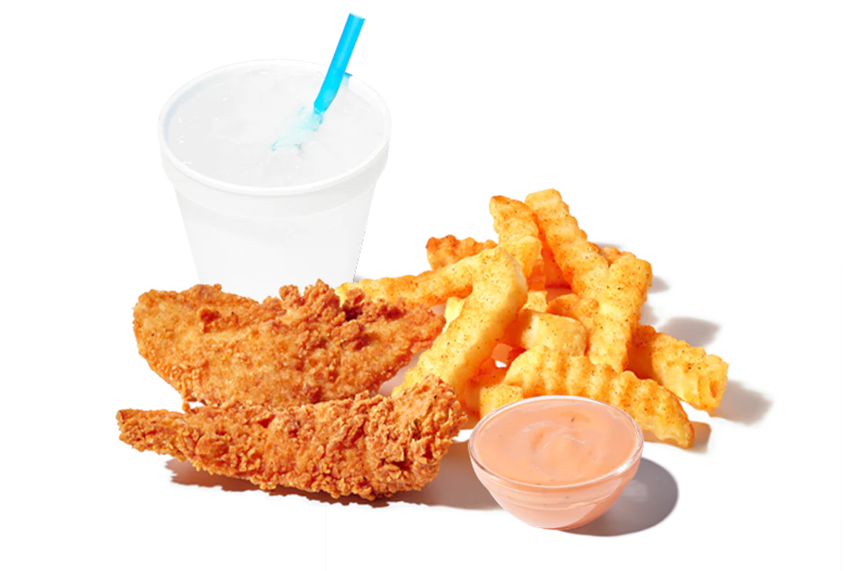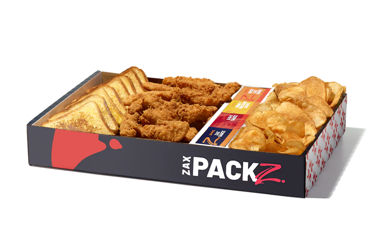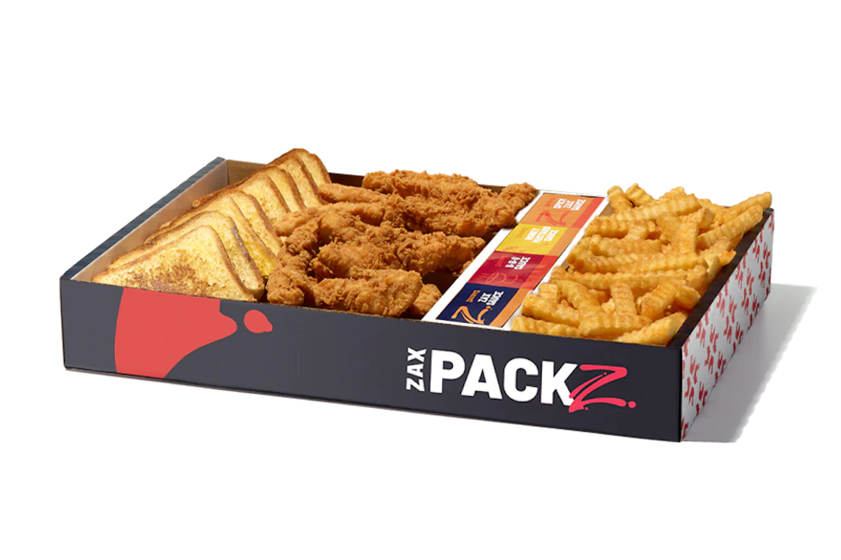3 hand-breaded Chicken Fingerz™ with Zax Sauce®. Served with Texas Toast, Crinkle Fries, and Small Drink.