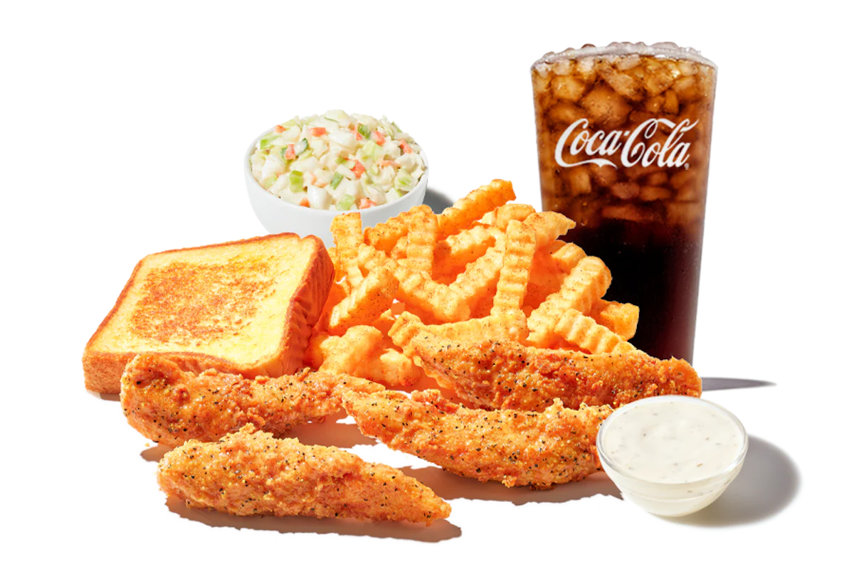 4, 5, or 6 hand-breaded Chicken Fingerz™ tossed in our zesty, tangy Lemon Pepper Dry Rub. Served with Ranch, Cole Slaw, Texas Toast, Crinkle Fries, and Small Drink.