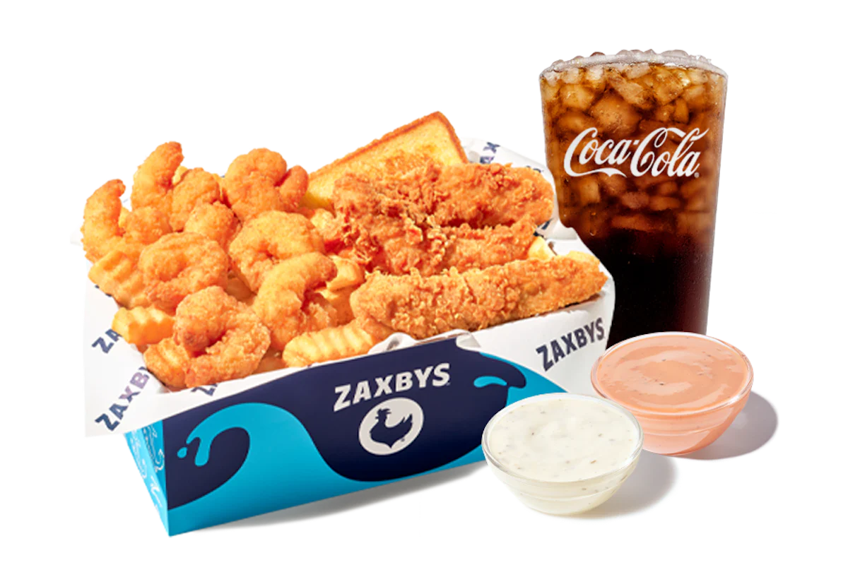 8 crispy Southern Fried Shrimp with Zax Sauce® and 3 hand-breaded Chicken Fingerz™ with Zax Sauce®. Served with Texas Toast, Crinkle Fries, and Small Drink.