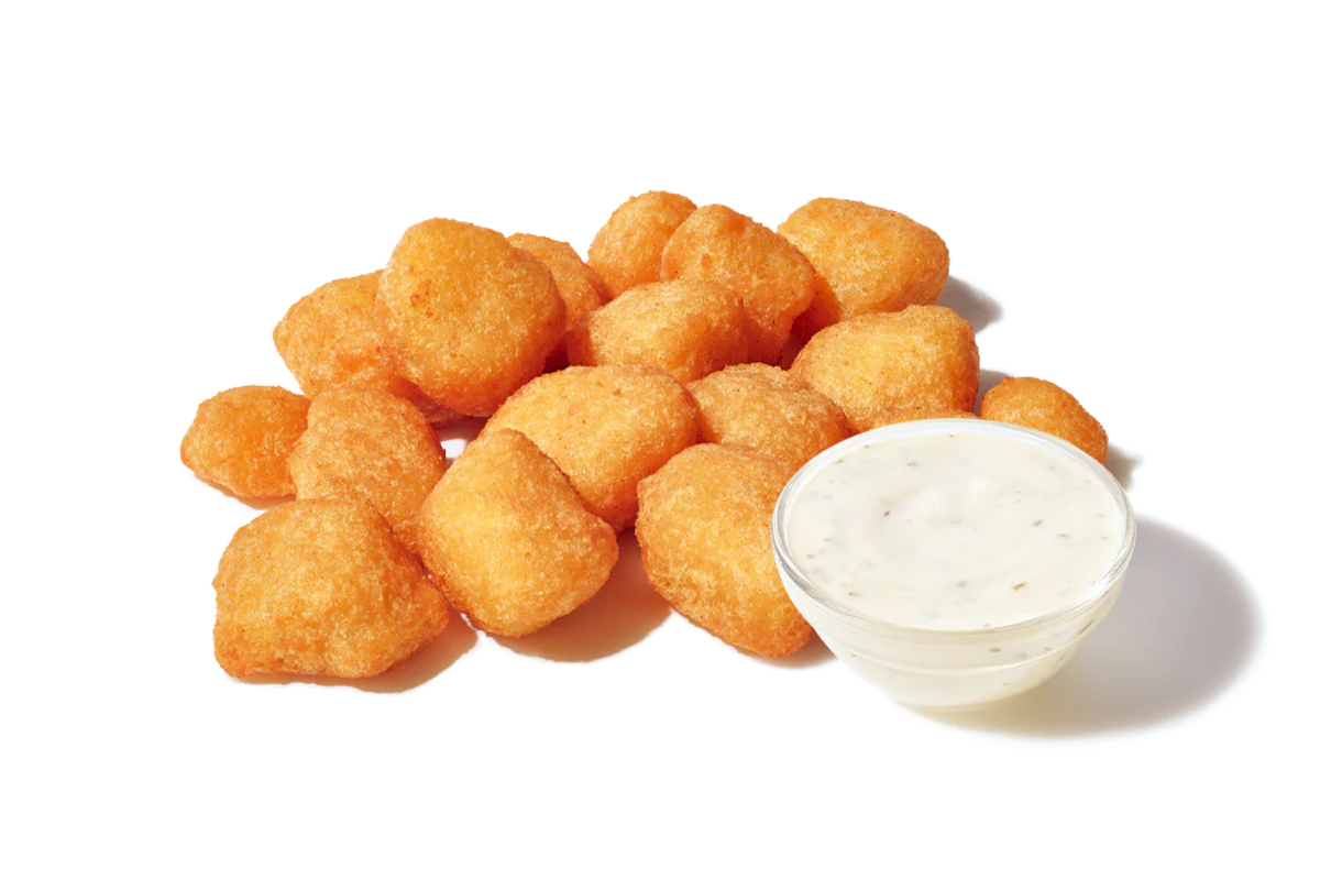 Bite-sized White Cheddar cheese dipped in batter and fried to golden brown. Served with Ranch.
