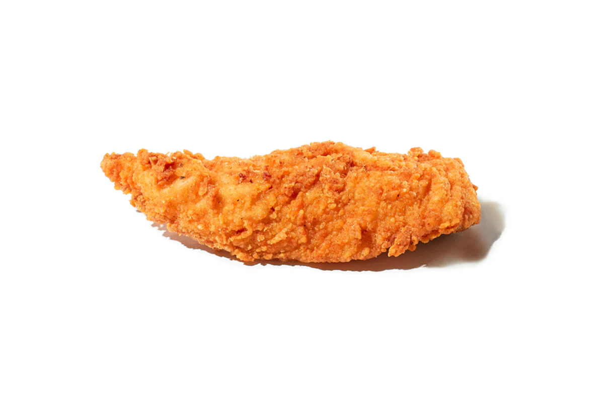 A hand-breaded Chicken Finger with Zax Sauce® on a toasted bun.