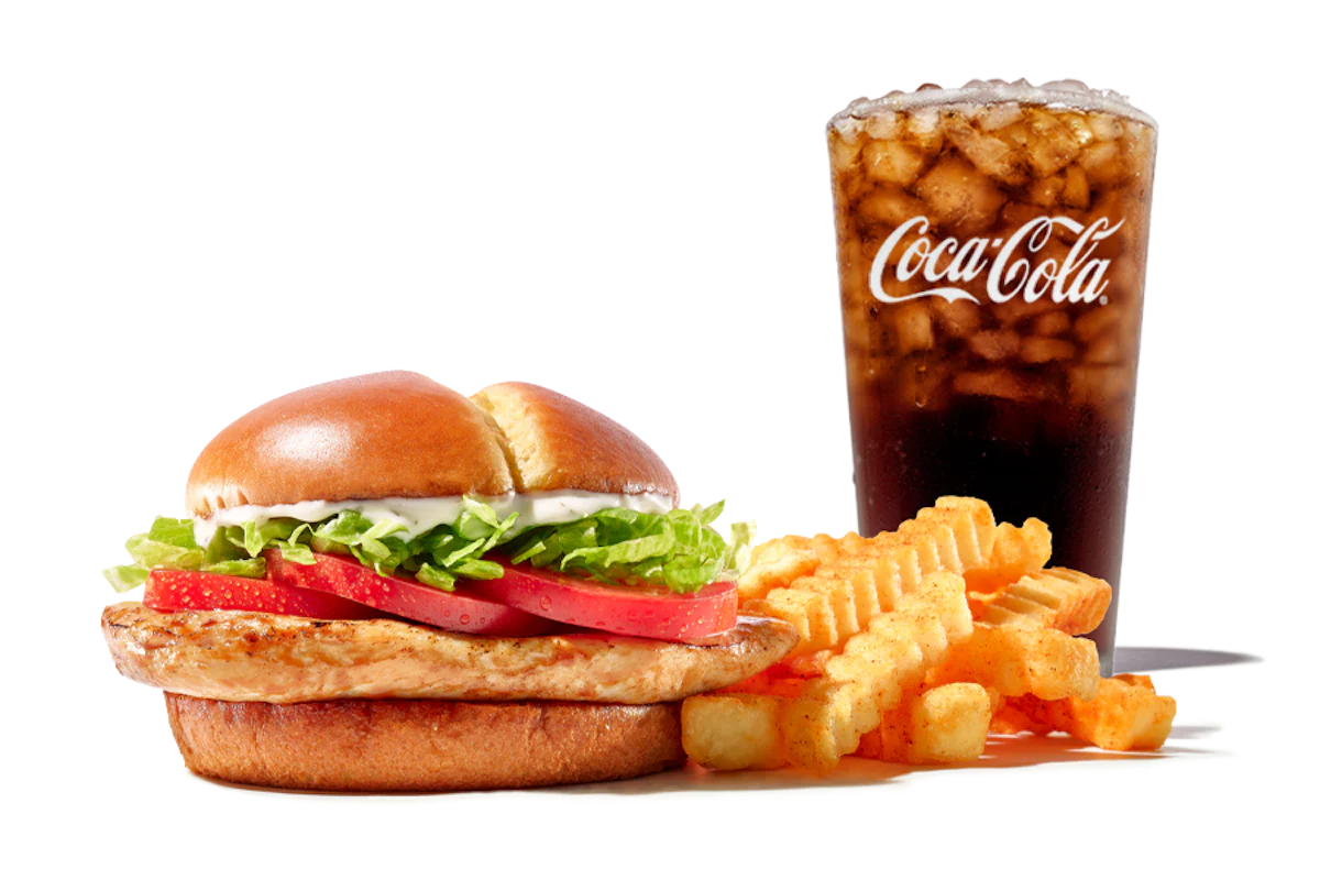 Marinated Grilled Chicken Fillet, lettuce, tomatoes, and Ranch on a toasted potato bun. Served with Crinkle Fries and Small Drink.