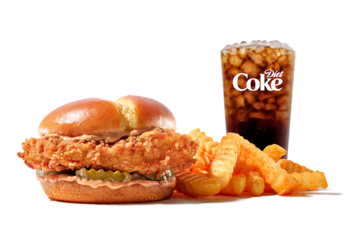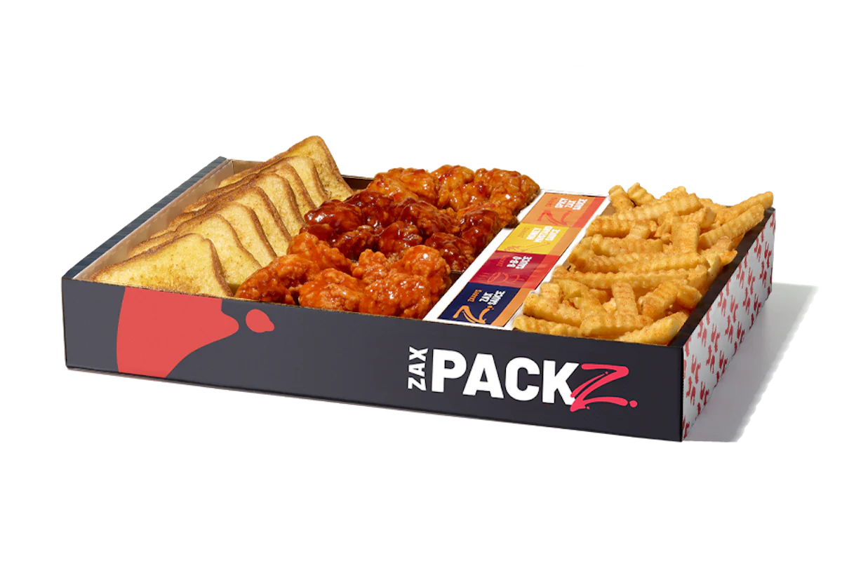 Hand-breaded Chicken Fillet, dill pickles, and Spicy Zax Sauce® on a toasted potato bun. Served with Crinkle Fries and Small Drink.