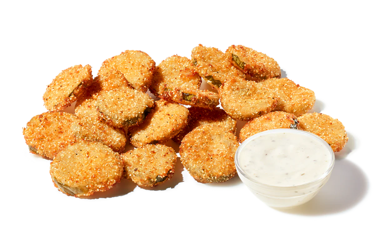 Dill pickle slices lightly breaded in cornmeal and fried to golden brown. Served with Ranch.
