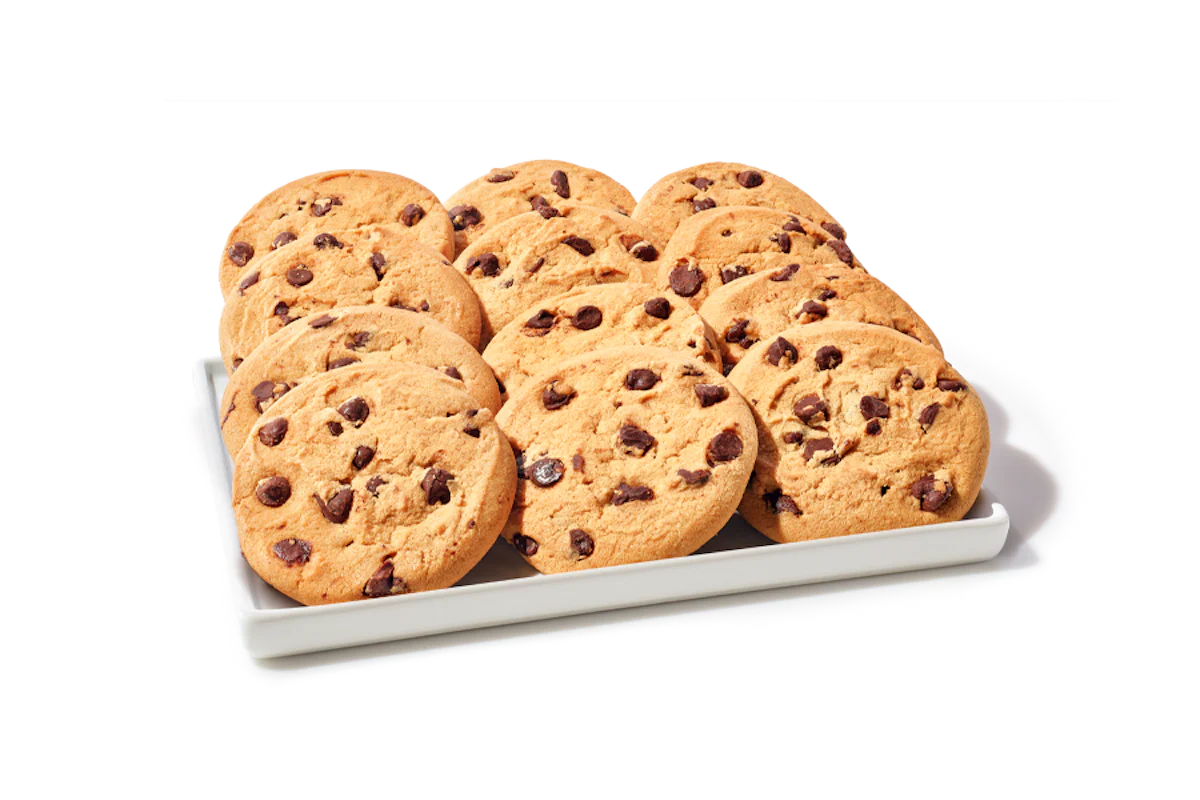 Chocolate Chip Cookies, baked fresh daily. Regular (12 Cookies) or Large (36 Cookies).