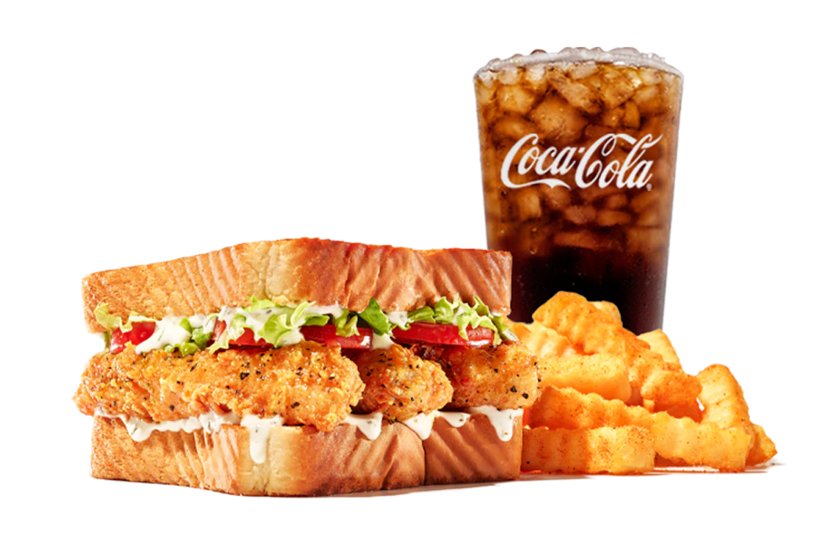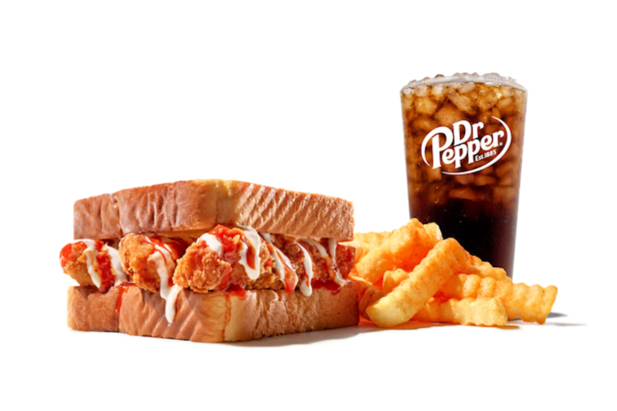 Hand-breaded Chicken Fingerz™, Tongue Torch®, and Ranch on Texas Toast. Served with Crinkle Fries and Small Drink.
