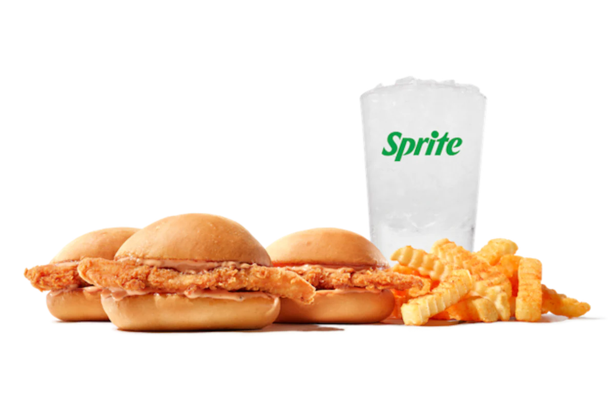 3 Nibblerz® – hand-breaded Chicken Fingerz™ and Zax Sauce® on toasted buns – served with Crinkle Fries and Small Drink.